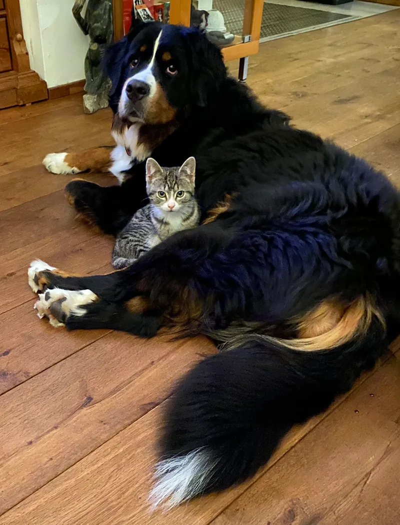 Whizzey is een zeer lieve vrolijke Berner ligt graag op de bank samen met onze kat Gizmo, samen zijn het dikke maatjes.
